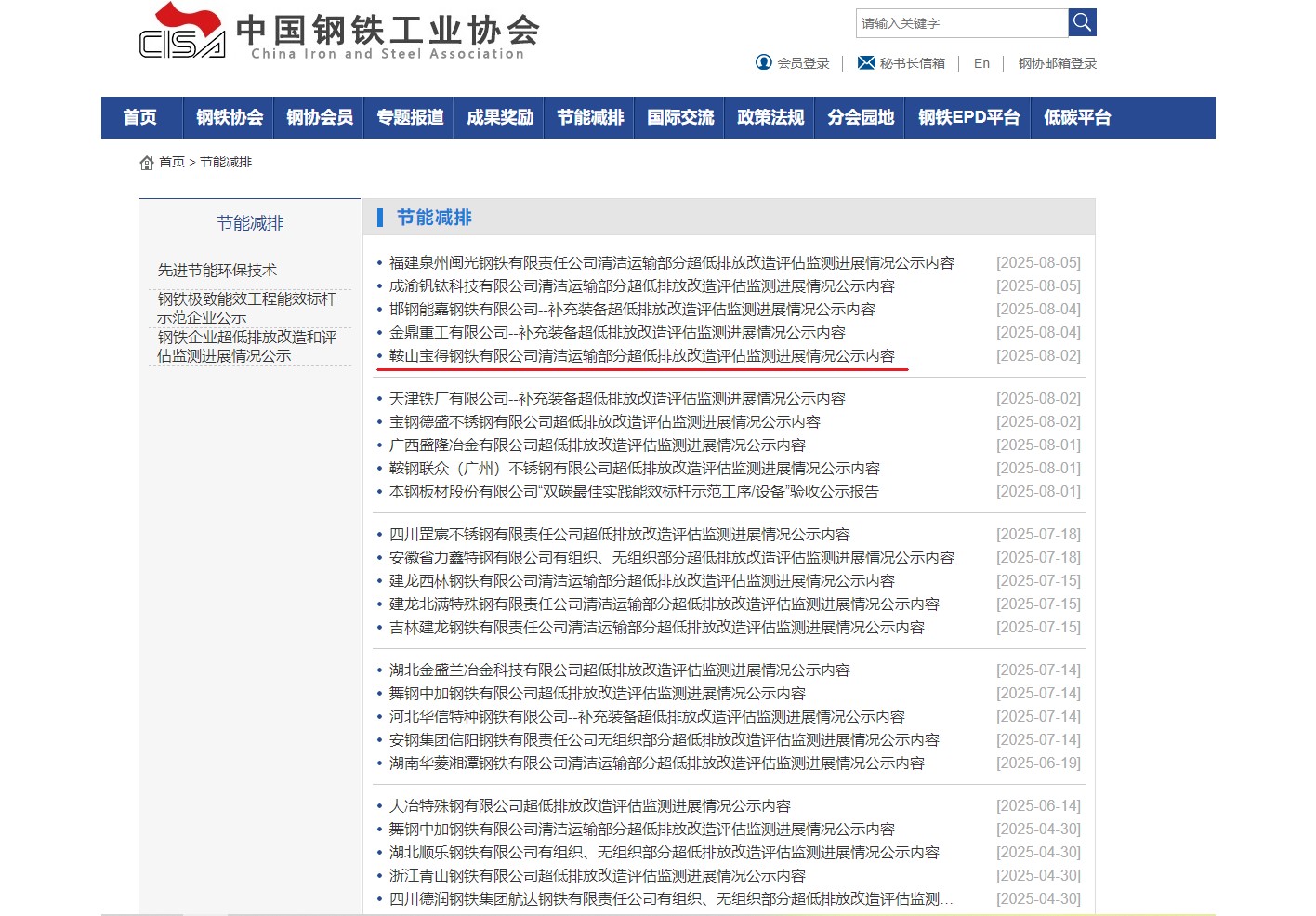 2025年8月2日,中國鋼鐵工業(yè)協(xié)會對鞍山寶得鋼鐵有限公司超低排放清潔運輸改造和評估監(jiān)測情況進(jìn)行了公示,寶得鋼鐵有限公司成為鞍山市除鞍鋼外首個完成超低排放清潔運輸改造和評估監(jiān)測工作的企業(yè),標(biāo)志著公司超低排放改造項目取得重要階段性成果。不僅為企業(yè)可持續(xù)發(fā)展奠定了堅實基礎(chǔ),也為鞍山地區(qū)的環(huán)境保護作出了積極貢獻(xiàn),是企業(yè)履行社會責(zé)任的生動實踐。